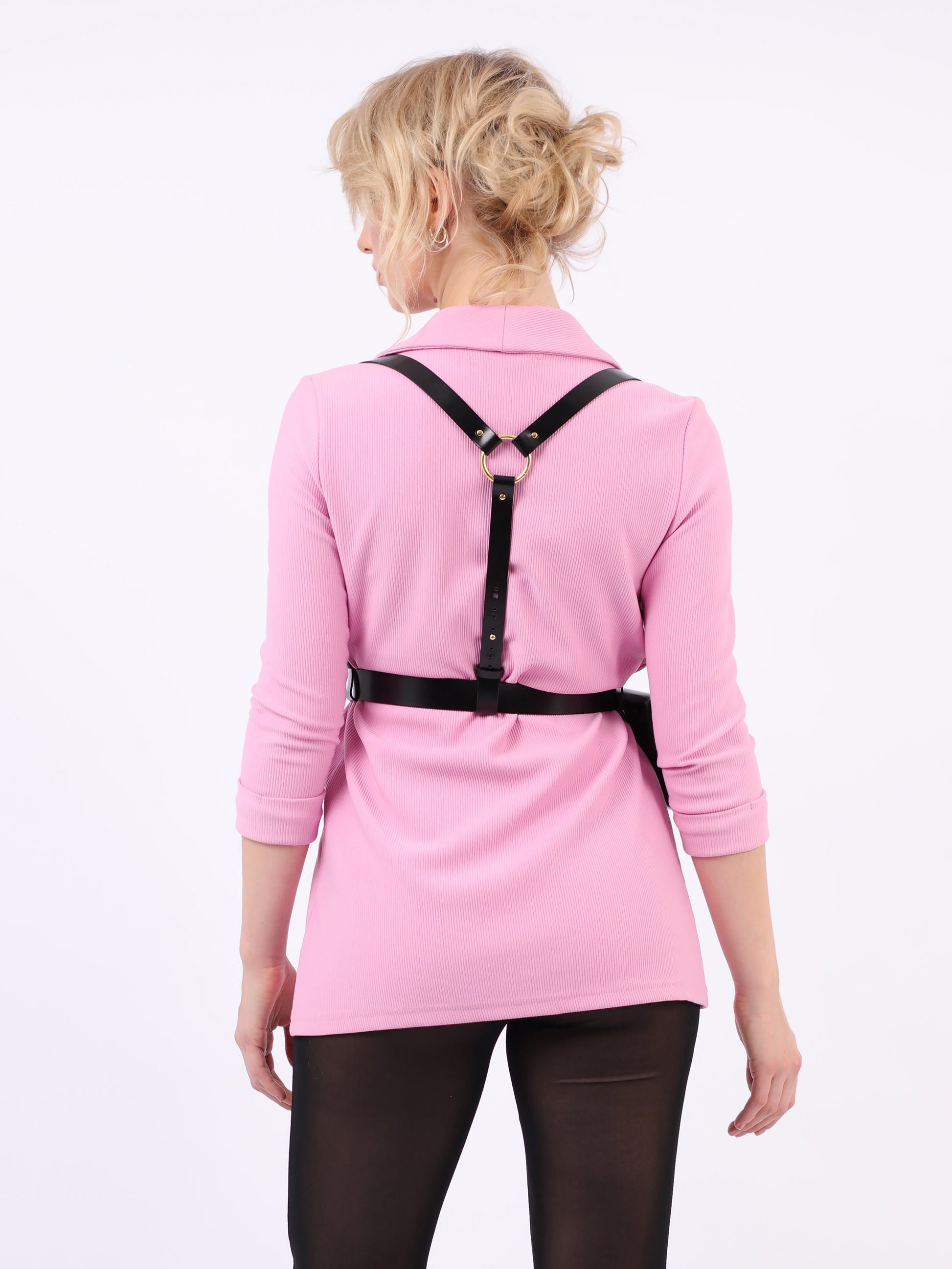 Formed of a waist belt and adjustable straps over the shoulder, the piece features an envelope bag that adds a unique and functional element to the harness, making it not only a fashion statement but also a practical accessory that can hold your phone, wallet or other essentials. Whether you are heading to a music festival, a night out, or just want to elevate your street style, this leather harness bag is the perfect choice.